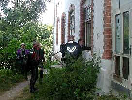 Wegen der Länge der Strecke wurde ausnahmsweise ein längeres Stück Autobahn gefahren; ab Wittstock ging es dann wieder gemütlicher über die Landstraßen Mecklenburg-Vorpommerns. Groß war der Schreck beim Eintreffen in Basedow, als wir an der Ortseinfahrt statt eines prunkvollen Schlosses eine Ruine vorfanden - anscheinend eine der vielen unbewältigten Altlasten der DDR. Eine Rundfahrt um das verrammelte Gebäude würde reichen. Wolfgang kannte aber ein Foto des Schlosses und damit war klar: es musste noch etwas anderes geben. Kurz nach der Weiterfahrt war es dann auch zu sehen: ein prachtvolles Gebäude. Unweit davon fand sich auch der Parkplatz.